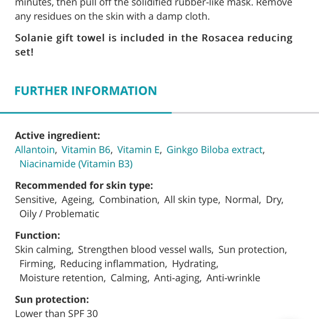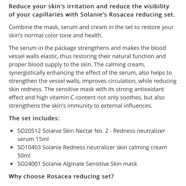 Reduce your skin's irritation and reduce the visibility of your capillaries with Solanie's Rosacea reducing set.